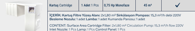 Max 45m3 havuzlar İçin dir